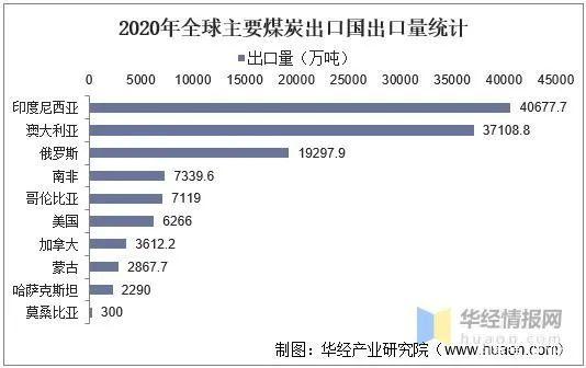 澳大利亞僅次于印泥,出口量預(yù)計超過3.61億噸;俄羅斯出口量約為1.93億噸,南非超過7300萬噸,哥倫比亞超7100萬噸,美國煤炭出口量縮減為約6200萬噸。